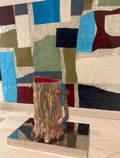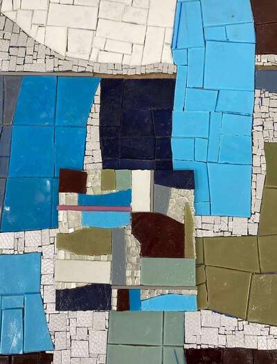The courage and trust installed in me by Parisian interior designer Jérôme Thénot, was a creative awakening. When invited to create a kitchen splashback in Thénot’s flat whose love for contemporary art is bold, my instinct was to call this project LAURA BASSI, in honour of the Italian physicist and academic Laura Maria Caterina Bassi Veratti. This mosaic is a play between far and close sight, where the deep reds, blues, whites, and silvers contrast with the white base creating a double vision and texture. This mosaic represents my deep appreciation for Italy.